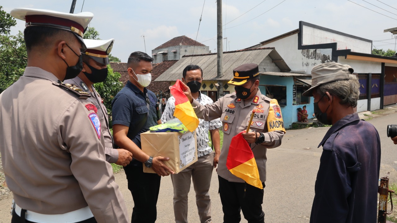 Dalam kesempatan itu, Kapolres Blitar Kota memberikan bantuan sembako dan sarana kontak atau peralatan pendukung untuk Supeltas penjaga perlintasan kereta api tanpa palang pintu