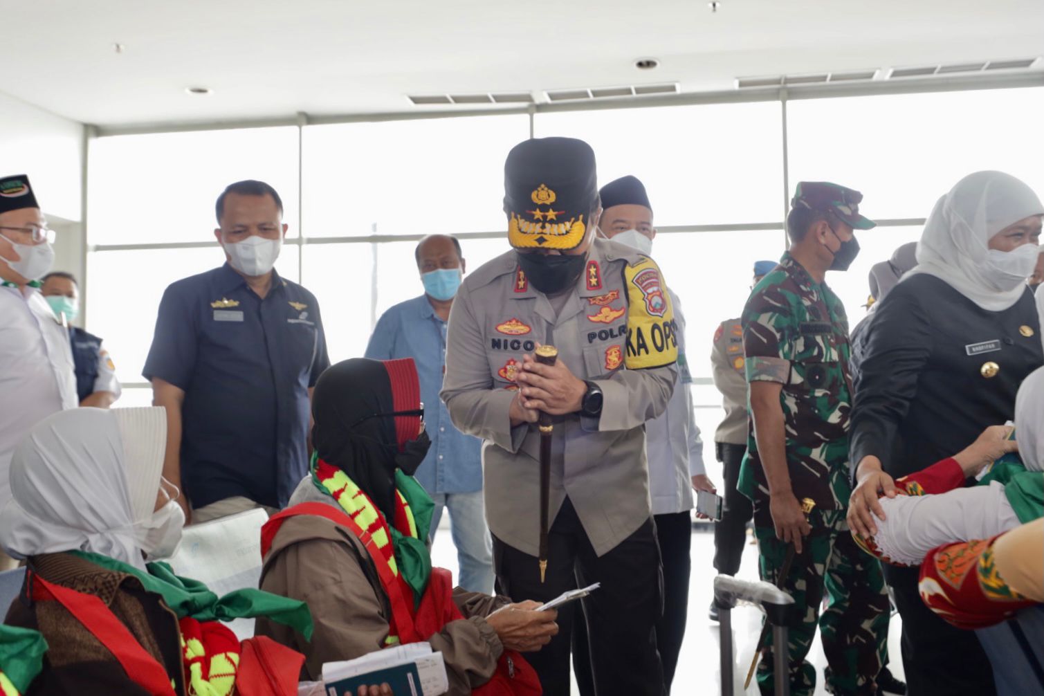 Gubernur Jawa Timur Khofifah Indar Parawansa, Pangdam V Brawijaya Mayjend TNI Nurchahyanto, Kapolda Jatim Irjen Pol Nico Afinta, Danlanudal Juanda, Kakanwil Kemenag Jatim, pejabat utama Kodam V Brawijaya, pejabat utama polda jatim, Kapolresta Sidoarjo, Direktur Teknik Garuda Indonesia serta Koordinator Himpunan Penyelenggara Umrah dan Haji Khusus (Himpuh) Jatim, Bali dan NTB secara resmi melepas jamaah umroh dan sekaligus membuka penerbangan jamaah umroh melalui Bandara Internasional Juanda.