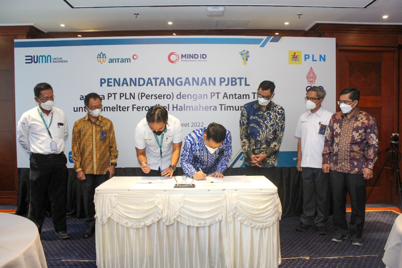 Komitmen ini ditandai dengan penandatanganan Perjanjian Jual Beli Tenaga Listrik (PJBTL) antara PLN dan Antam di Jakarta, Senin (14/3).