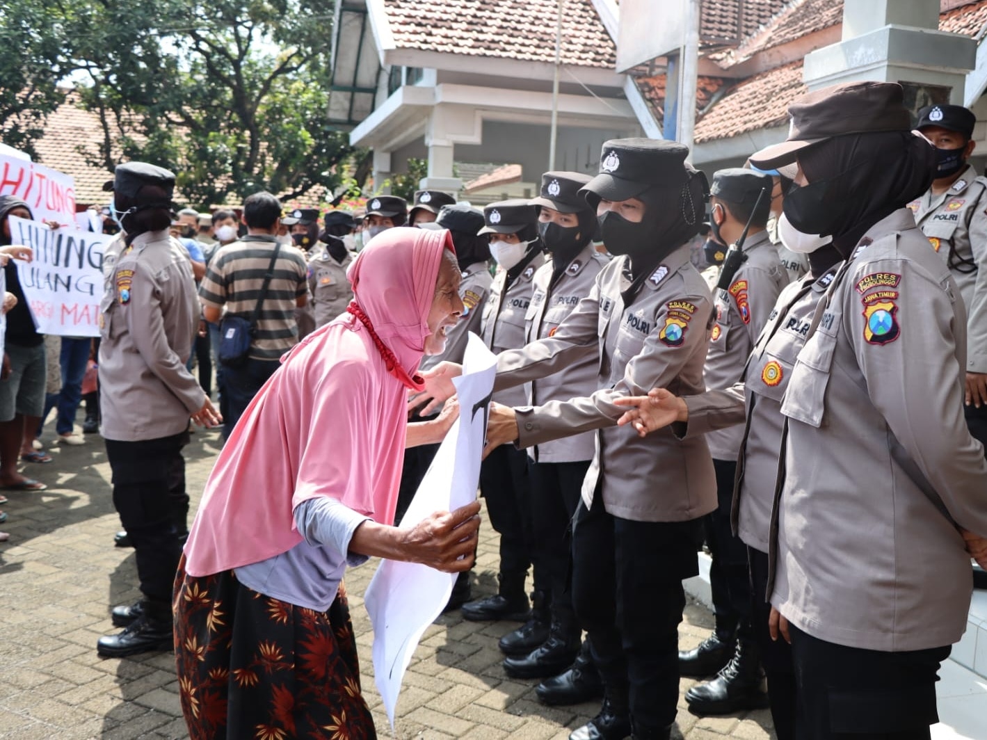 Polwan Polres Probolinggo Sigap Bantu Warga Lansia Saat Aksi Unjuk Rasa di Probolinggo