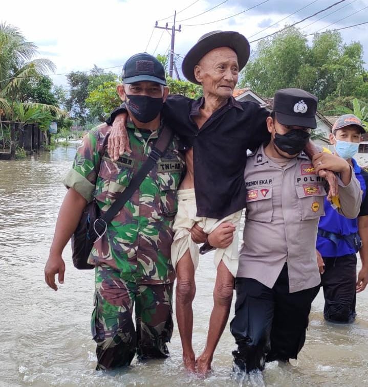 Salah satunya adalah Mbah Hamim (60) seorang lansia yang rumahnya 3 hari terendam banjir. Meskipun kadang tak bisa menyembunyikan kesedihannya akibat bencana yang menimpa, namun Mbah Hamin masih sesekali tersenyum atas bantuan dari Polres Jember.