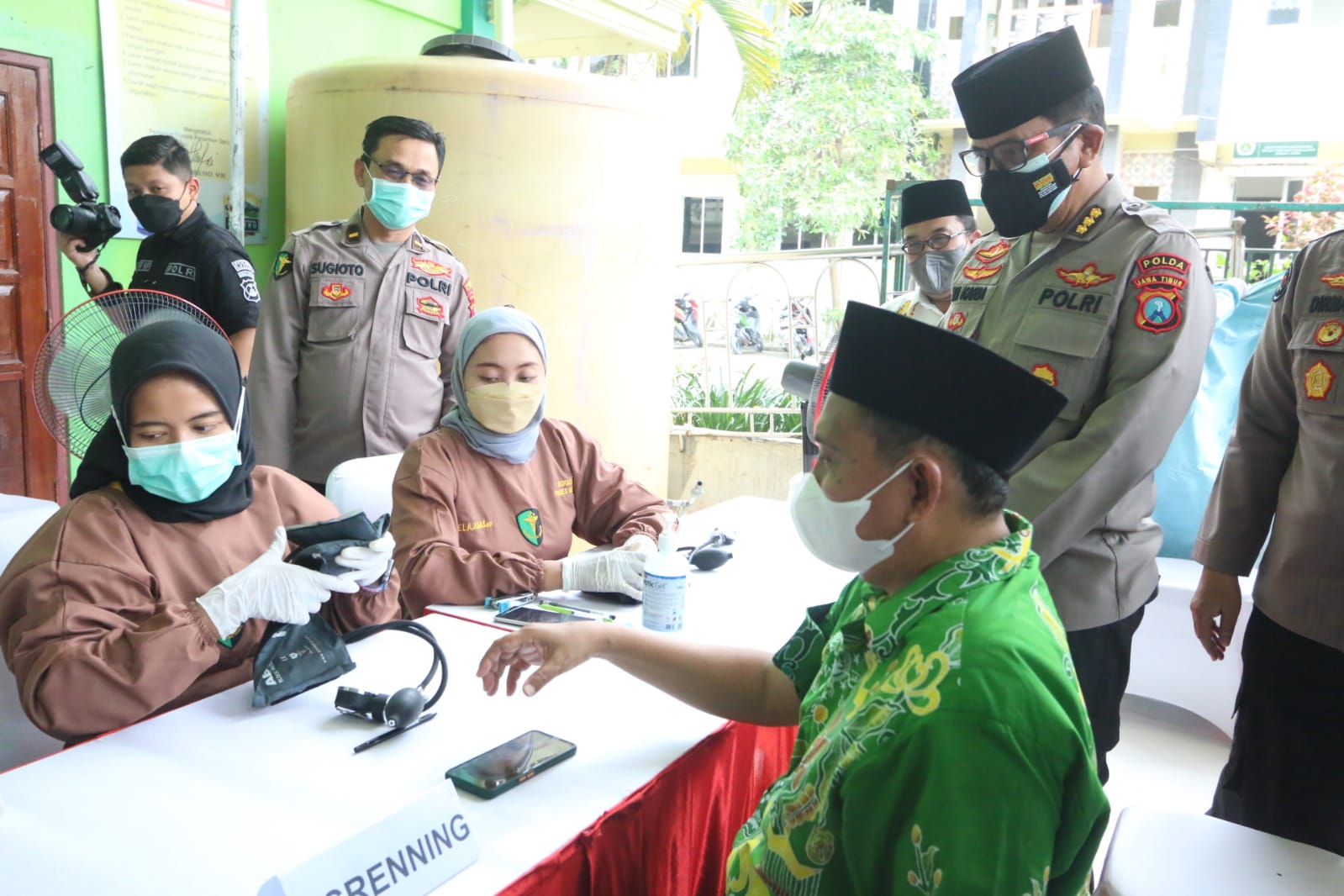 Gresik, IPers -Pejabat Utama Polda Jatim diantaranya Kabidkum Polda Jatim Kombes Pol Adi Karia Tobing, selaku Pamatwil Polres Gresik, didampingi Kabid Humas Polda Jatim Kombes Pol Dirmanto dan Kabid Dokkes Polda Jatim Kombes Pol Erwin Zainul Hakim, melakukan pengecekan vaksinasi booster yang berlangsung di Pondok Pesantren Darul Ikhsan Menganti, Gresik, pada Sabtu (23/4/2022).