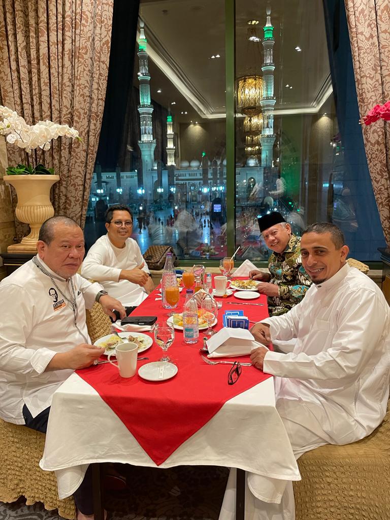 MADINAH, IPers -Ketua DPD RI AA LaNyalla Mahmud Mattalitti dan Wakil Ketua DPD RI Mahyudin tiba di Madinah, Arab Saudi, Senin malam waktu setempat. Kedatangan pimpinan DPD RI itu disambut langsung Duta Besar Indonesia untuk Arab Saudi Abdul Aziz Ahmad, Senin (9/5/2022) malam waktu Arab Saudi.