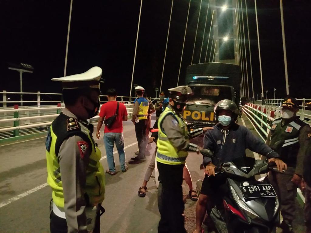 Bojonegoro, IPers - Seiring dengan peningkatan kasus Covid-19 berdasarkan laman website Satuan Tugas Penanganan Covid-19, Polres Bojonegoro bersama-sama instansi terkait Kodim 0813/Bojonegoro, Satpol PP menggelar Patroli Motor Penegakan Protokol Kesehatan (Pamor Keris) di tempat fasilitas umum, Rabu(13/7/2022) malam.