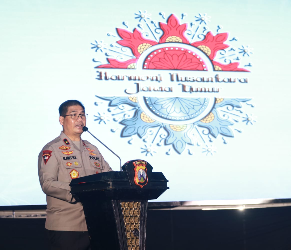 Waka Polda Jatim Brigjen Pol Slamet Hadi Supraptoyo, dalam sambutannya menyampaikan, Apresiasi kepada seluruh personel Polda Jatim dan jajaran serta semua pihak yang turut andil dalam mensukseskan kegiatan Harmoni Nusantara Jatim tahun 2022 yang bertemakan “Pulih Cepat, Bangkit Lebih Kuat".