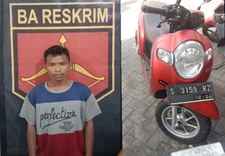 Diketahui pelaku yang ditangkap berinisial MRM (20) tahun, asal Desa Bulan Menganti - Gresik ditangkap di daerah Mojokerto saat akan melakukan transaksi sepeda motor hasil kejahatan.
