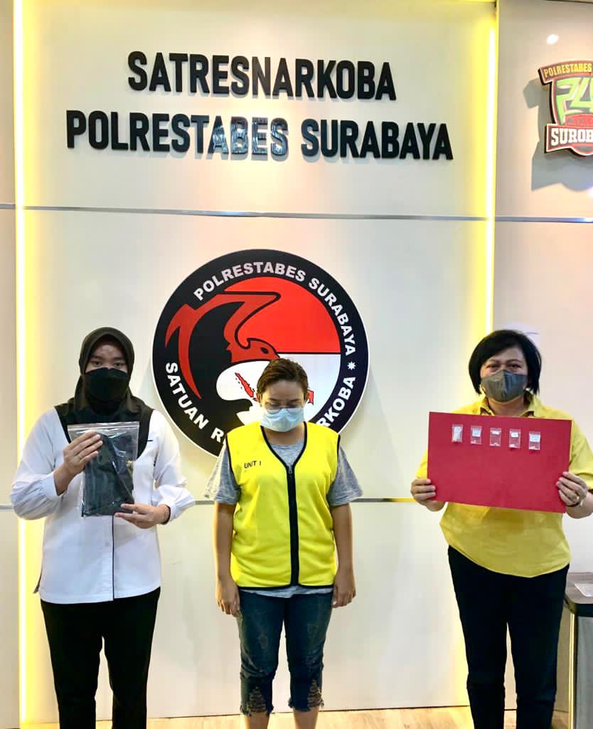 AKBP Daniel Kasat Narkoba Polrestabes Surabaya menyebutkan, terduga pelaku ibu muda rumah tangga itu, kita amankan pada hari Selasa (19 Juli 2022) sekira pukul 15.00 Wib, di Jalan Raya wilayah Pakis Surabaya.
