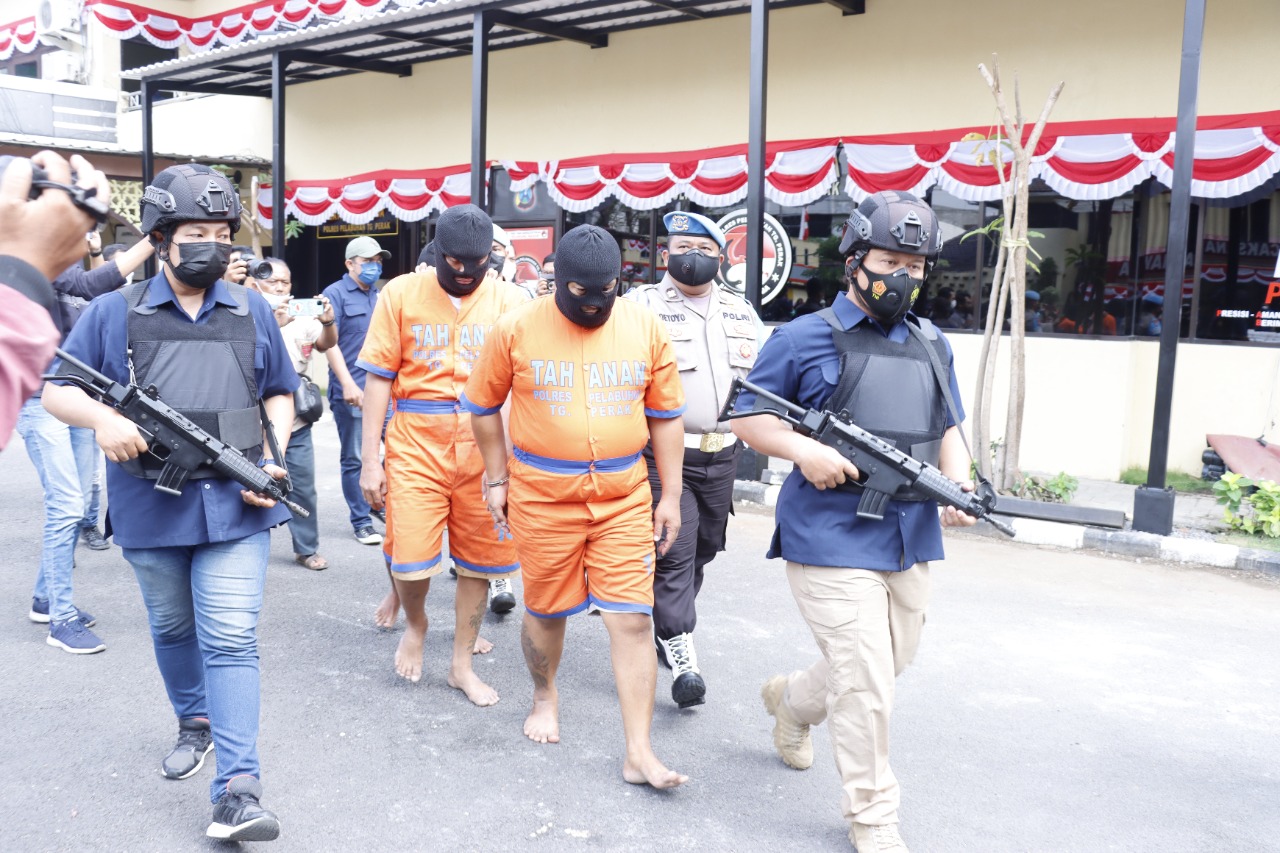 "Penangkapan dari tiga pelaku berawal tertangkapnya pelaku YA pada Selasa, (09/08/2022) lalu. YA diringkus anggota Satnarkoba Polres Pelabuhan Tanjung Perak Surabaya, di Jalan Kalijudan Surabaya, dengan barang bukti sabu-sabu seberat, 6.165 Kilogram," urai Kapolres.