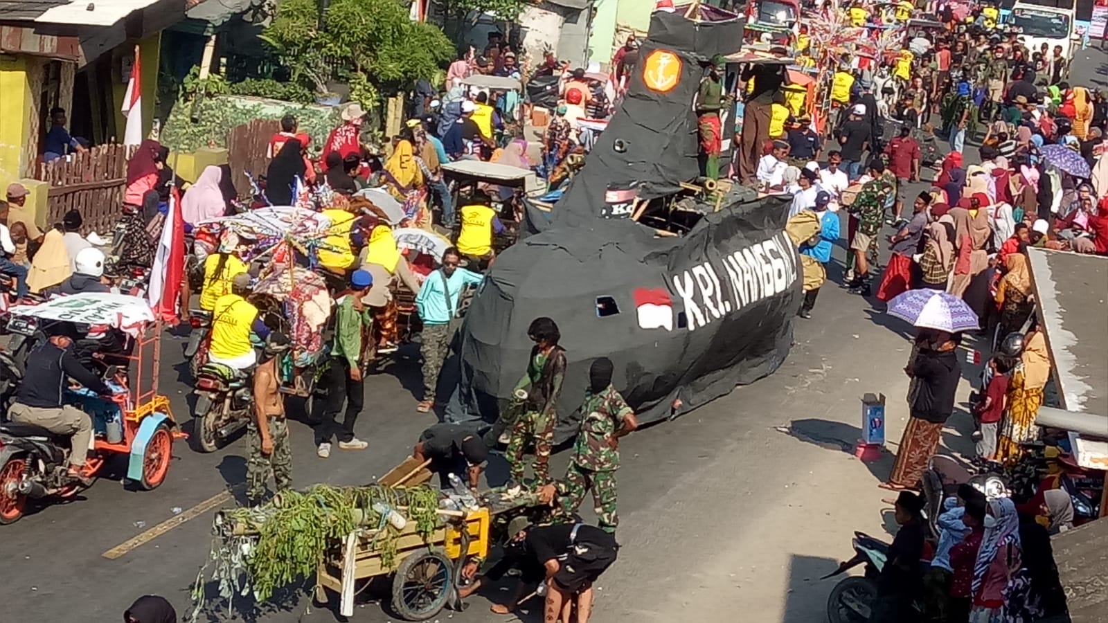 Kreativitas berbagai tema karnaval di sajikan oleh masing-masing peserta. mulai dari pakaian adat, profesi, kegamaan, dan pakaian dinas instansi seperti TNI dan Polri yang memberikan simbol perjuangan. Akibat pergelaran karnaval tersebut jalan pantura Sarang di tutup, sehingga jalan pantura di kecamatan sarang macet total sampai acara karnaval selesai. (Suharso)