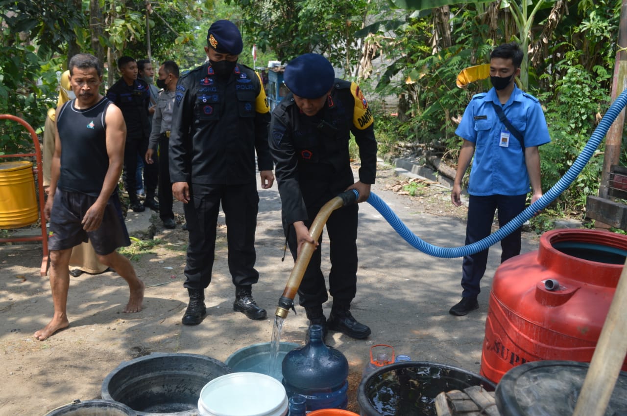 "Maka dari itu anggota kami yang berdekatan dengan lokasi saya perintahkan memberikan bantuan air bersih yang bekerja sama dengan instansi terkait seperti PDAM dan sebagainya, kita salurkan ke masyarakat yang kekurangan air bersih," jelas Dansat Brimob Polda Jatim, Kombes Pol Guruh Arif Darmawan