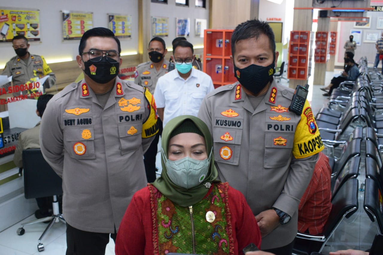 Layanan publik yang ditinjau Deputi Bidang Yanlik Kemenpan RB Diah Natalisa didampingi Kapolresta Sidoarjo Kombes Pol. Kusumo Wahyu Bintoro, layanan vaksinasi Covid-19 dan SKCK Keliling Online di Pos Polisi Taman Pinang Indah, kemudian peninjauan dilanjutkan di Mall Mini Pelayanan Polri (MMPP) Polresta Sidoarjo.