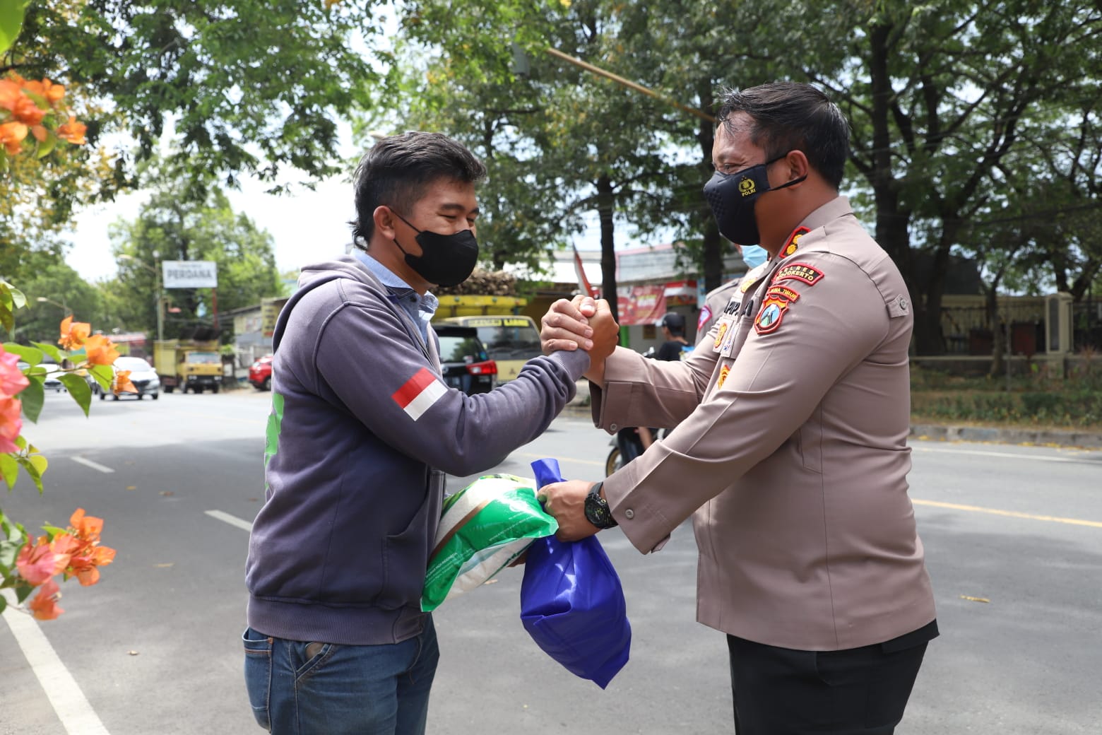 Polisi di Mojokerto Berbagi Sembako untuk Tukang Ojek Pasca Penyesuaian Harga BBM