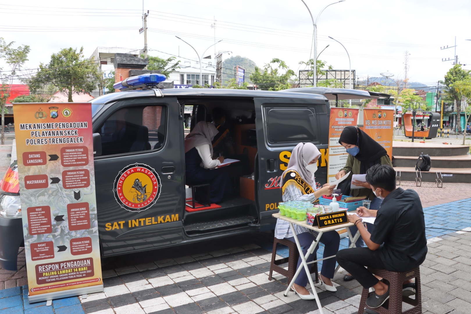 Polres Trenggalek kini melalui Satintelkam membuka pelayanan SKCK keliling yang ditempatkan pada pusat keramaian seperti pasar, alun-alun maupun fasilitas publik lainnya yang kerap menjadi jujukan aktivitas warga.