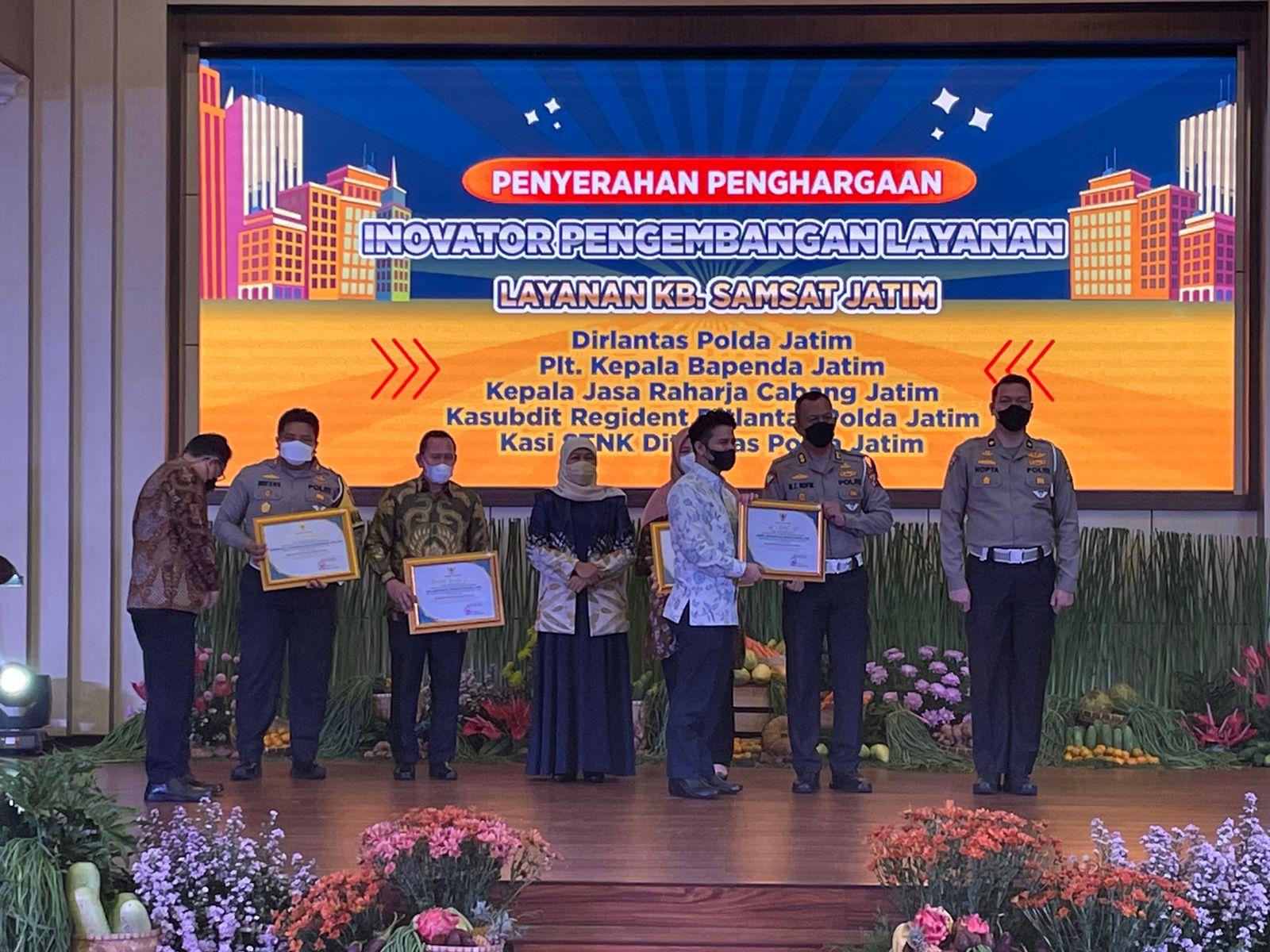 Serta dilaksanakan juga pemberian penghargaan untuk tim pembina dari Ditlantas Polda Jatim, Jasa raharja, bapenda atas inovasi dan pengembangan pelayanan kantor bersama Samsat Jatim sebagai pendukung kebijakan Gubernur. (MA)