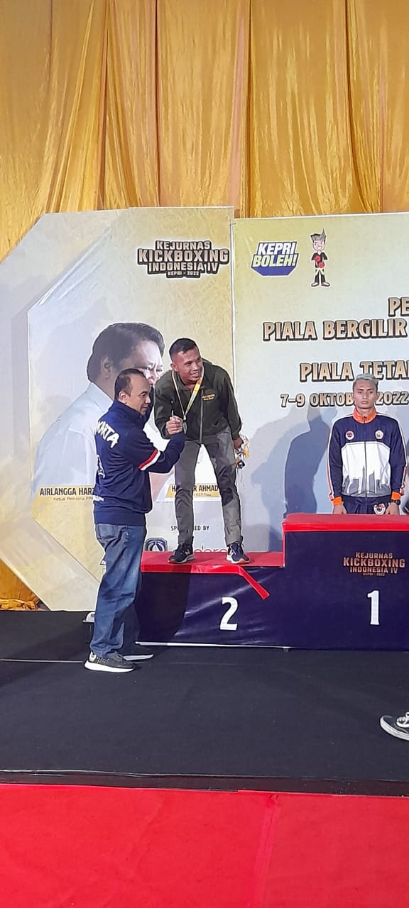 Batam, IPers - Dispen Kormar (Batam). Atlet kickboxing Yonarhanud 2 Marinir yang tergabung dalam atlet kickboxing Rakca Fighting Camp yang bermarkas di Pasmar 2 Gedangan, Sidoarjo raih prestasi pada kejuaraan event NASIONAL KICKBOXING LOW KICK tempat di Batam, Kepulauan Riau. Minggu (09/10/2022).