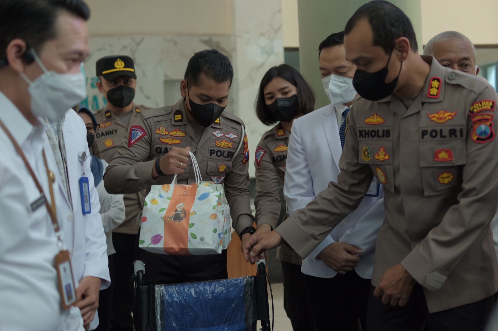 Dalam kesempatan tersebut, Kapolres Malang AKBP Putu Kholis Aryana ditemani pejabat utama Polres Malang turut mendampingi Vicky dan keluarga hingga memasuki mobil ambulans 911 yang akan mengantarkan pulang ke Sidoarjo. Kapolres juga memberikan bantuan kursi roda dan bingkisan kepada keluarga. "Kami mohon maaf, Semoga lekas sembuh dan sehat seperti sediakala," ucap AKBP Putu Kholis.