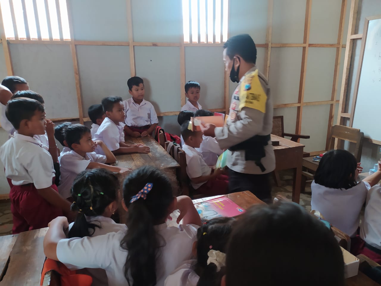 Mendukung wajib belajar dan peduli terhadap anak sekolah, Bhabinkamtibmas Polres Ponorogo ini menanam kebaikan dengan membagikan buku tulis kepada anak sekolah Dasar (SD) di desa binaannya, Kamis (03/11/2022)