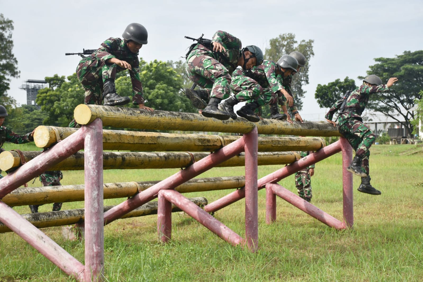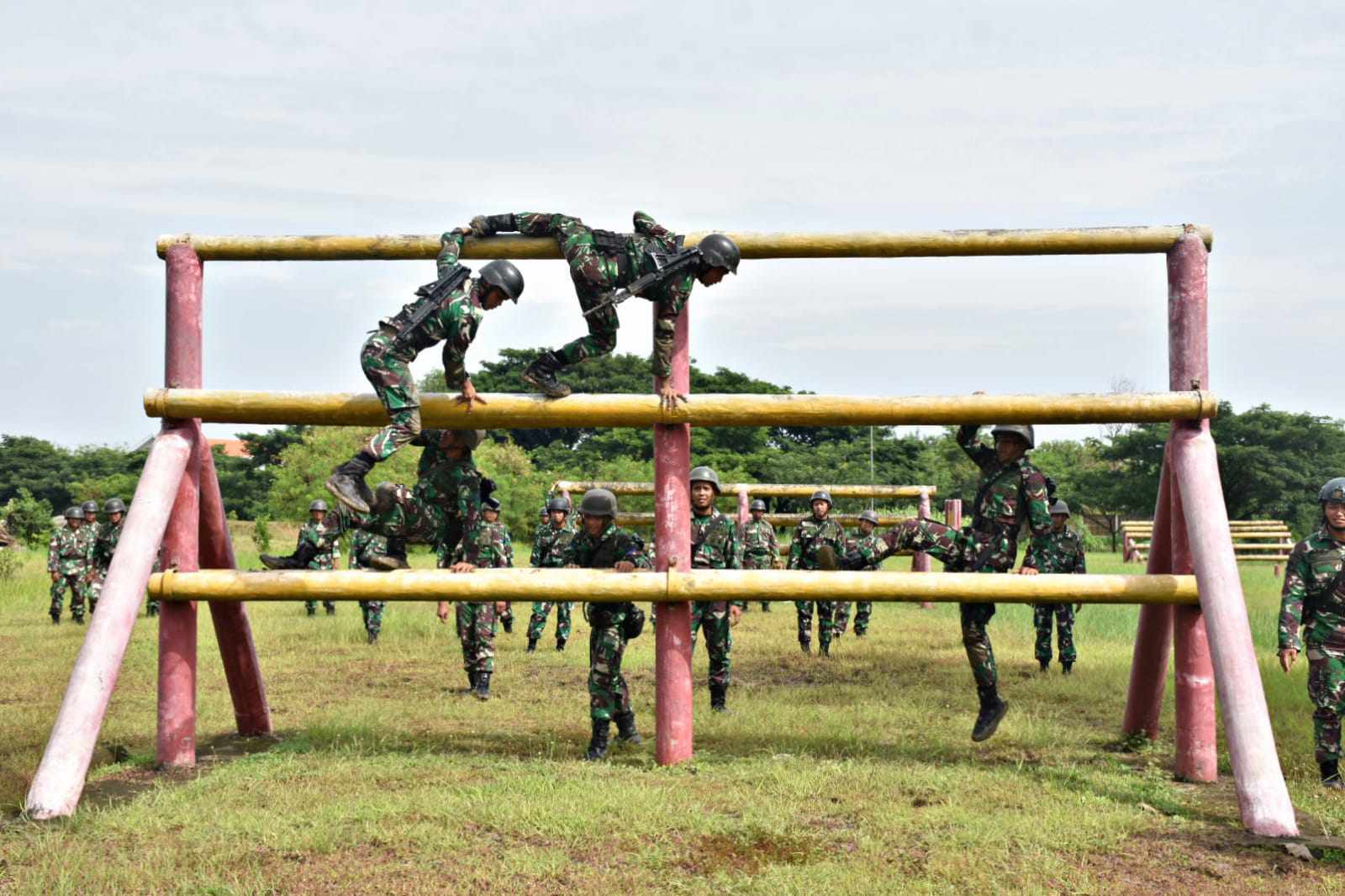 Surabaya, IPers - TNI AL, Dispen Kormar . Dalam rangka meningkatkan kemampuan fisik dan profesionalisme, Prajurit Batalyon Arhanud 2 Marinir melaksanakan Uji Nilai Kemampuan Dasar Prajurit materi Halang Rintang yang bertempat di Lapangan Halang Rintang Ksatrian Marinir Sutedi Senaputra Karang Pilang, Surabaya. Kamis (22/12/2022)
