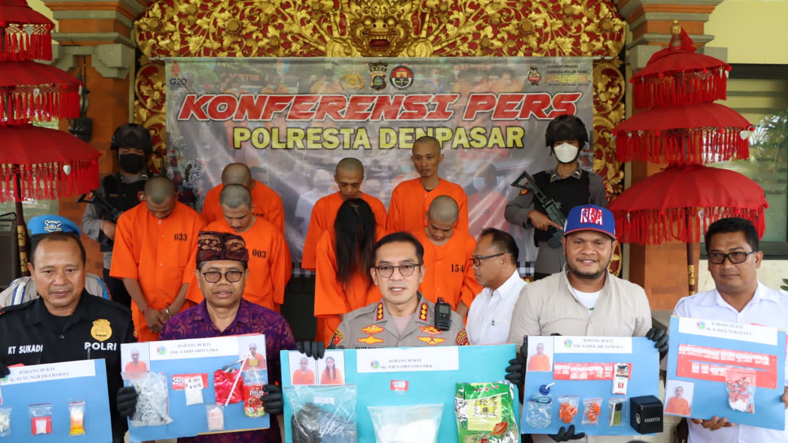 “Jadi awal tahun ini Satresnarkoba berhasil ungkap 10 kasus dengan 14 tersangka dan 7 diantaranya pengedar narkoba. Jumlah total barang bukti sabu 813,86 gram dan 10 butir ekstasi,” tegas Kapolresta Denpasar didampingi Kasatresnarkoba AKP Mirza Gunawan, SH.,SIK.