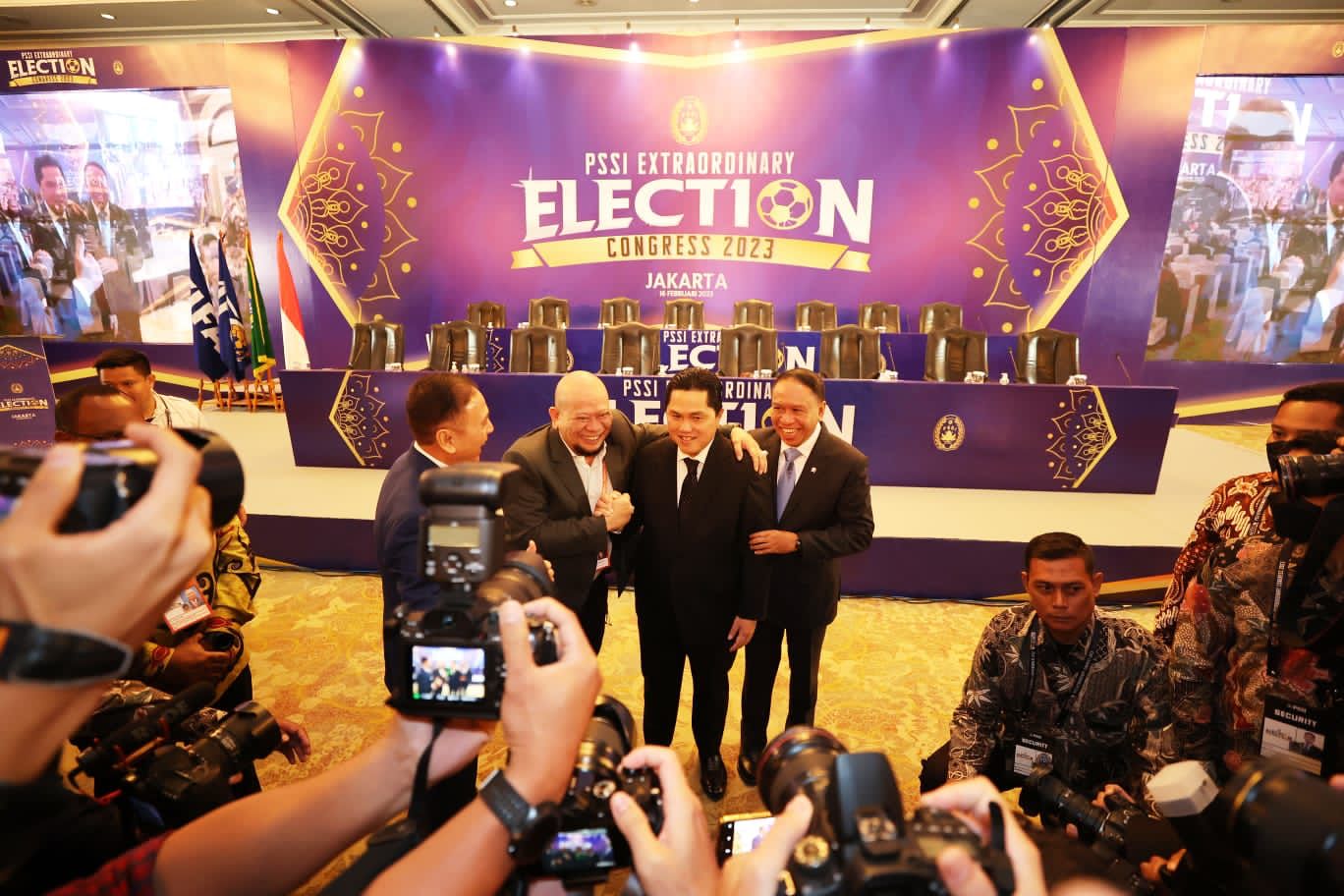 Diketahui Erick Thohir resmi terpilih sebagai Ketua Umum PSSI periode 2023-2027, menggantikan posisi Mochamad Iriawan. Erick mengantongi 64 suara dari voters. Ia unggul atas kandidat kuat lainnya, AA LaNyalla Mahmud Mattalitti yang mengemas 22 suara.(MA)