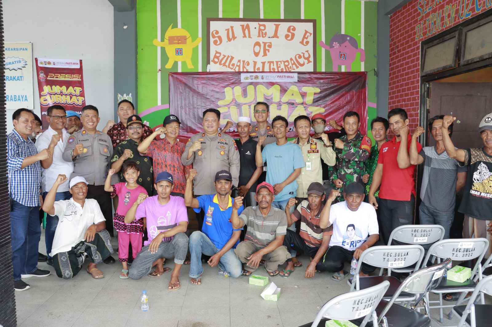 Dalam jumat curhat kali ini, dihadiri Waka Polres Pelabuhan Tanjung Perak Surabaya Kompol Wahyu Norman H, SH. SIK dari tokoh masyarakat kelurahan hingga nelayan.