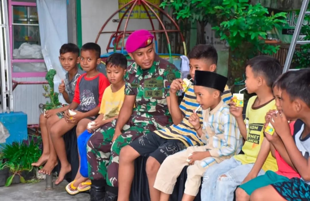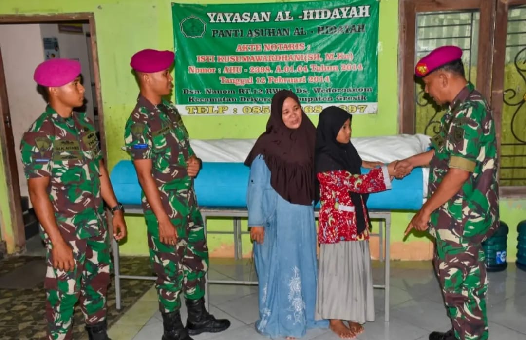 Gresik, IPers - TNI AL. Dispen Kormar - Personil Batalyon Arhanud 2 Marinir melaksanakan Bakti Sosial memberikan perlengkapan di Pondok Pesantren Al-Hidayah Desa Wedoroanom, Kecamatan Driyorejo, Gresik. Senin (27/02/2023)