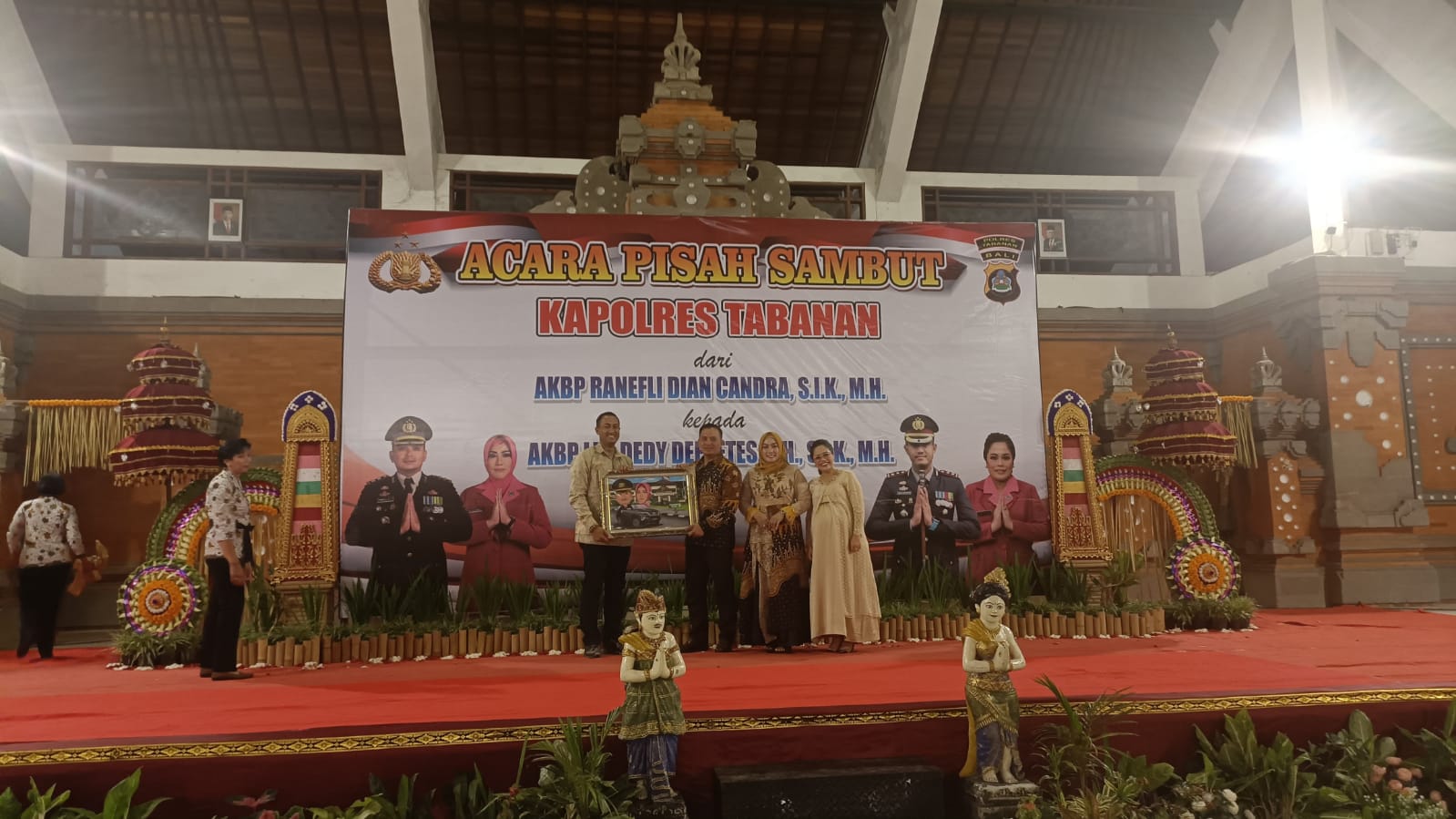 Bali Tabanan, IPers - Sabtu 18 Maret 2023. Dengan berakhirnya tugas AKBP Ranefli Dian Candra, S.I.K., M.H., sebagai Kapolres Tabanan dan digantikan oleh AKBP Leo Dedy Defretes, S.H., S.I.K., M.H., Pada hari Jumat, tanggal 17 Maret 2023 mulai pukul 19.30 sampai dengan 22.00 Wita bertempat di Gedung Kesenian I Ketut Maria Tabanan telah dilaksanakan pisah sambut Kapolres Tabanan dari AKBP Ranefli Dian Candra, S.I.K., M.H kepada AKBP Leo Dedy Defretes, S.H., S.I.K., M.H..