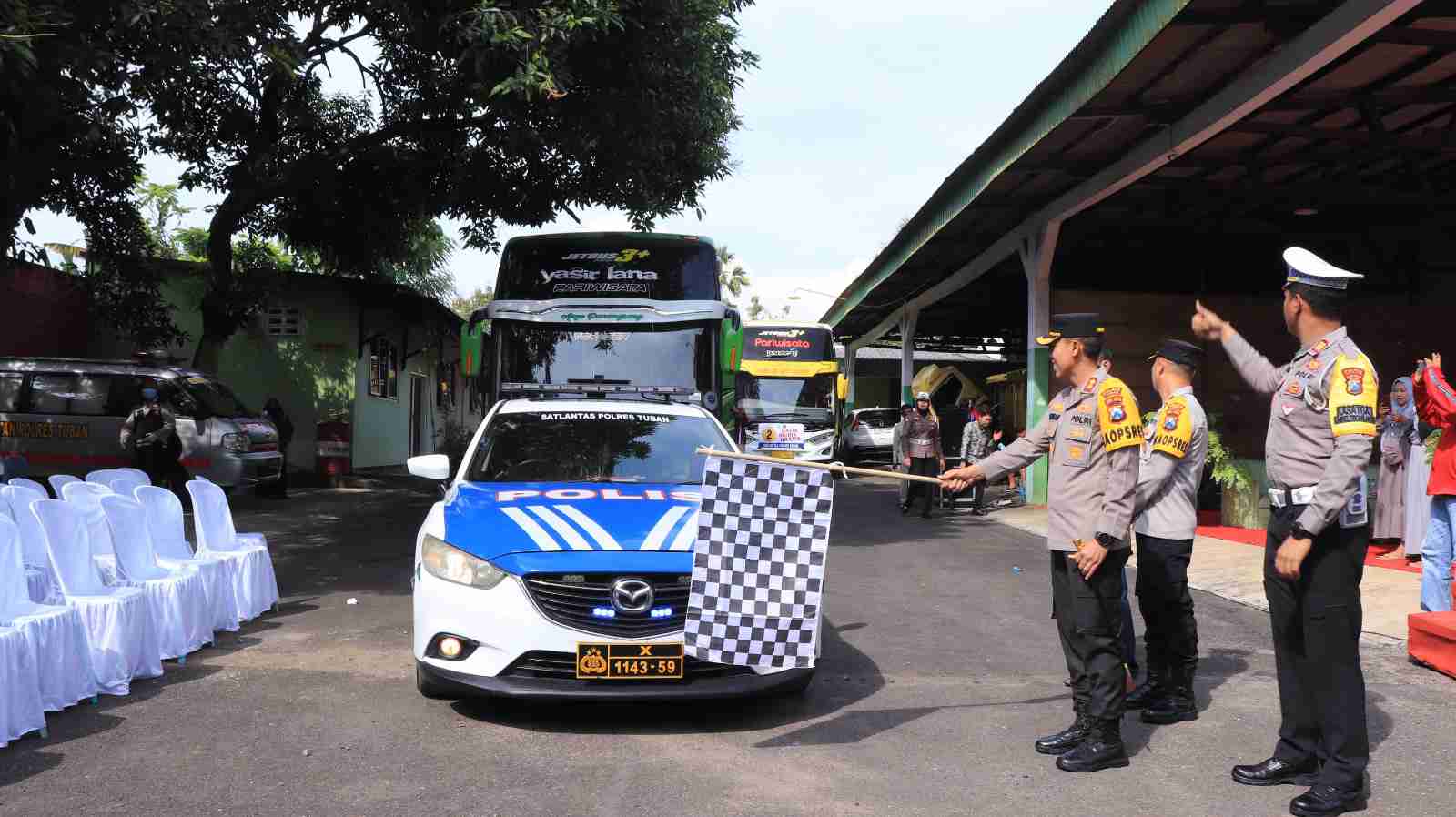Jum'at (28/04/23) sebanyak 175 pemudik asal kabupaten Tuban diberangkatkan oleh Kapolres Tuban AKBP Rahman Wijaya, S.I.K., S.H., M.H., dengan menggunakan tiga unit Bus menuju Jakarta dan sekitarnya.