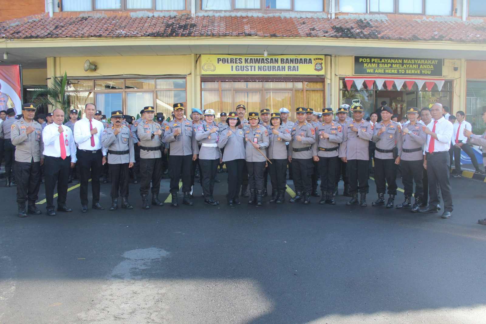 Upacara pelaporan kenaikan pangkat pengabdian dipimpin oleh Kapolres Kawasan Bandara I Gusti Ngurah Rai AKBP Ida Ayu Wikarniti, S.E. yang diikuti oleh seluruh personil termasuk Para Pejabat Utama (PJU), Bintara dan Aparatur Sipil Negara (ASN)