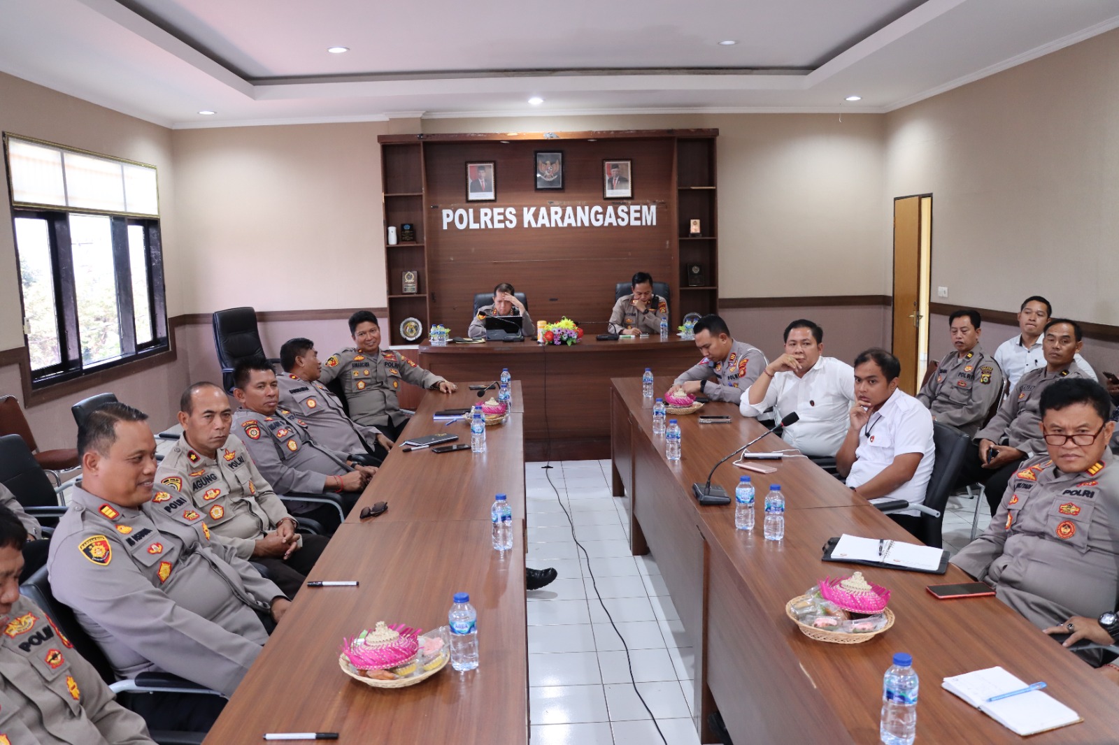 Polda Bali, IPers - Polres Karangasem, Kapolres Karangasem AKBP Ricko A. A. Taruna, S.H., S.I.K., M.H., M.M., didampingi Wakapolres Karangasem Kompol Fachmi Hamdani, S.Psi., S.I.K., dan Pejabat Utama Polres Karangasem mengikuti video conference (vicon) yang dipimpin oleh Kapolri Jenderal Polisi Listyo Sigit Prabowo, dengan jajaran pejabat Mabes Polri dan para Kapolda. Vicon ini dilaksanakan di Aula Dhira Brata Polres Karangasem. Senin (05/06).
