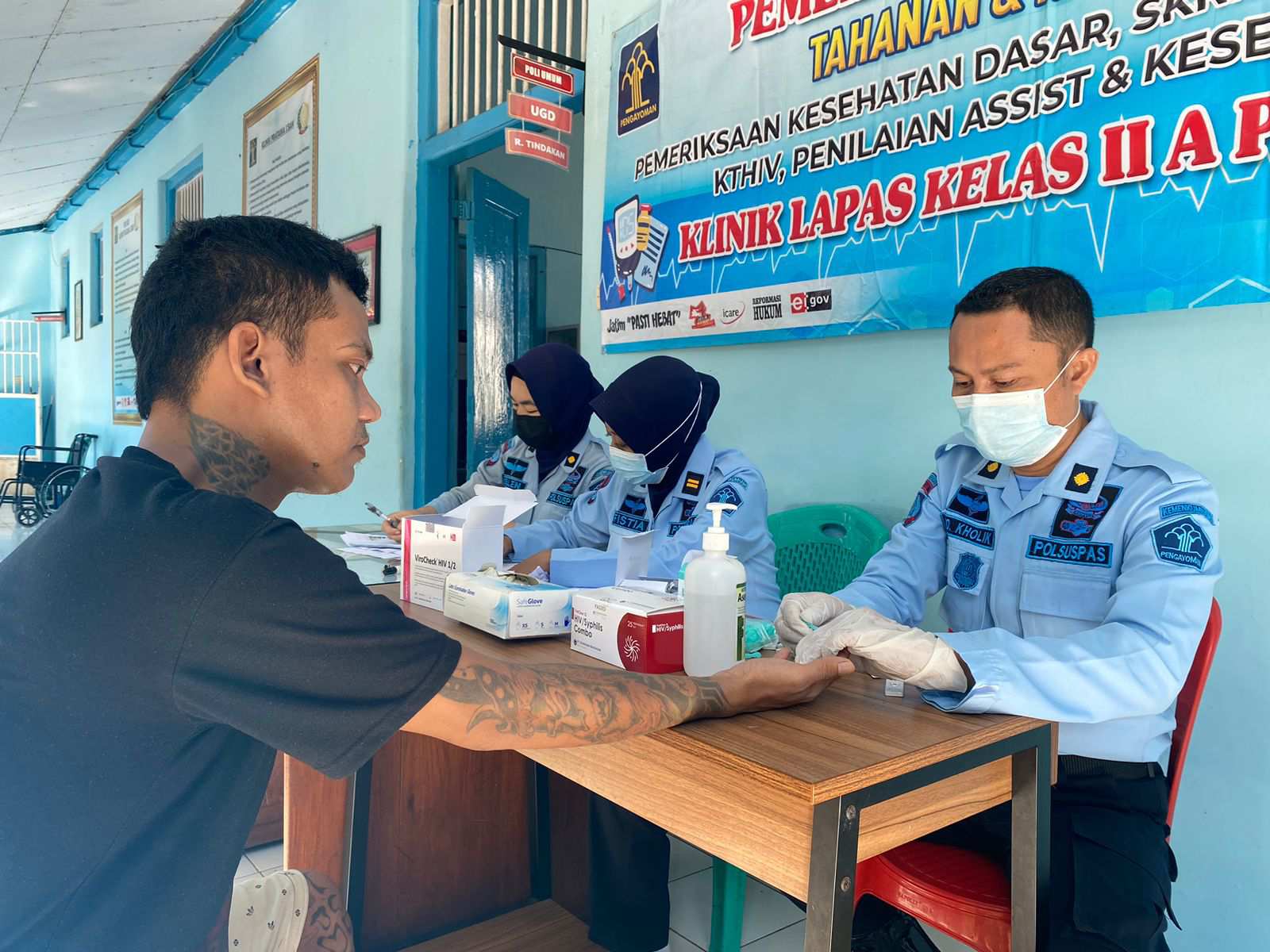 Bertempat di Klinik Lapas Pamekasan, kegiatan pada pukul 08.30 WIB. Warga Binaan yang dilakukan pemeriksaan kesehatan, skrining TBC & HIV merupakan WBP pindahan dari Lapas Sidoarjo, Lapas Pasuruan dan Lapas Bojonegoro dengan jumlah 23 WBP yang melaksanakan kegiatan tersebut.