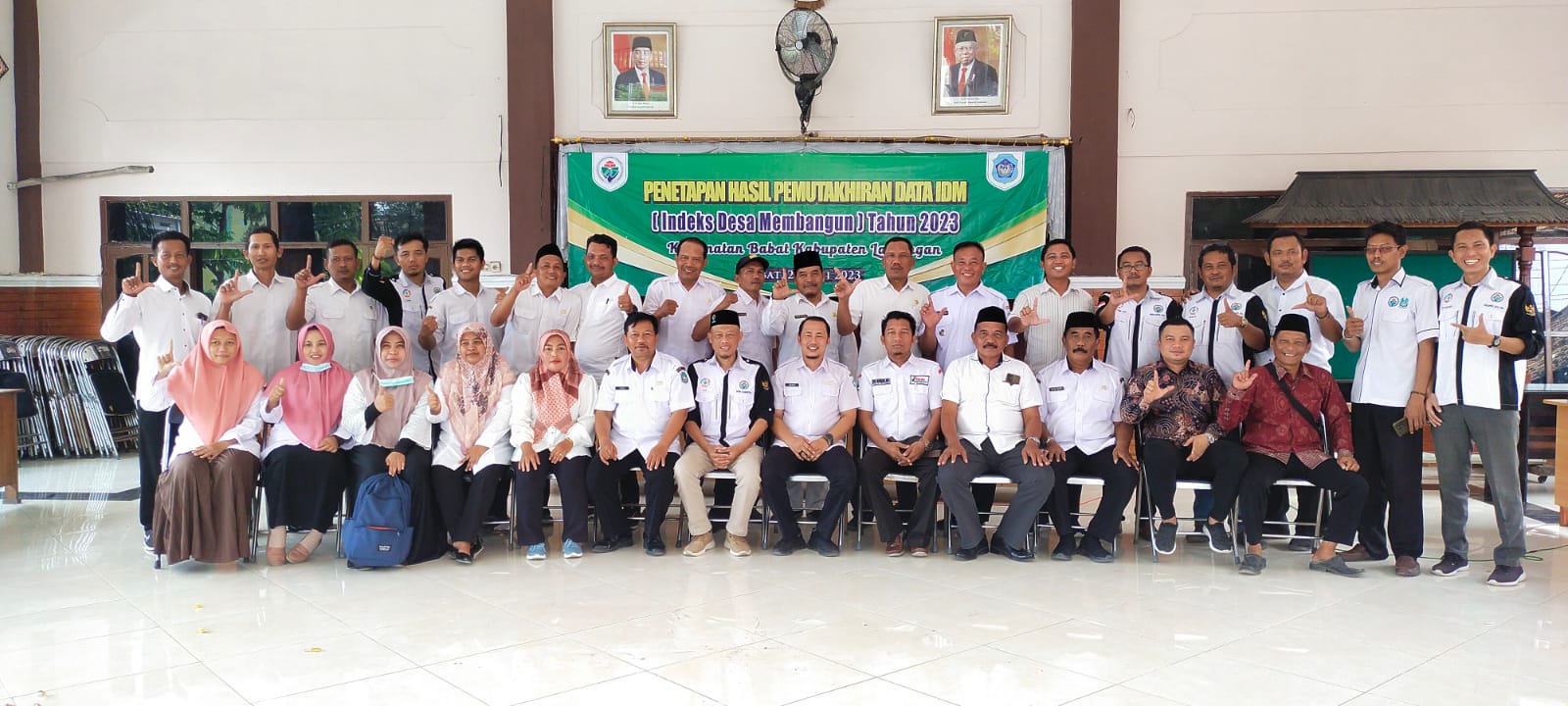 Dalam acara Penetapan Hasil Indeks Desa Membangun (IDM) 2023 Kecamatan Babat di hadiri Camat Babat Johny Indrianto F, S. STP. M.Si, TPP P3MD Kabupaten Lamongan H. Ari Saputro Wibowo, Moch. Mukhlish, Kepala Desa se Kecamatan Babat dan Pendamping Desa Kecamatan Babat.
