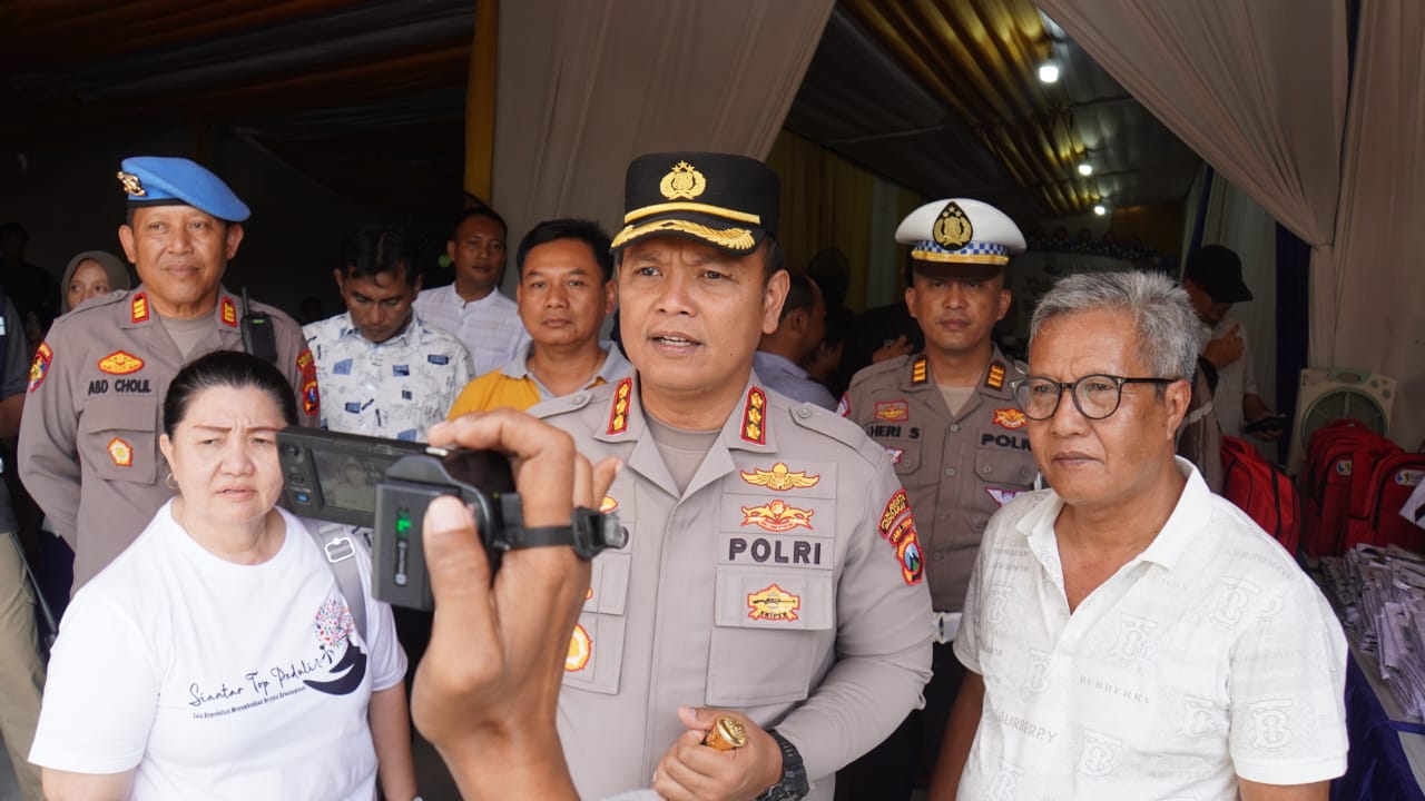 Kapolresta Sidoarjo Komisaris Besar Polisi Kusumo Wahyu Bintoro, hadir meninjau langsung pelaksanaan khitan massal ceria. Serta menyerahkan bingkisan kepada para peserta khitan.