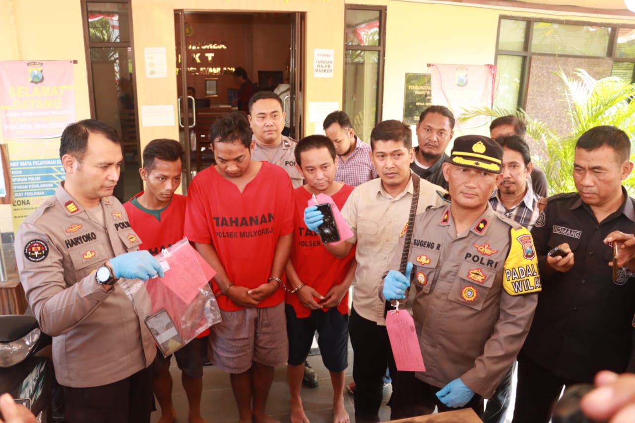 Mereka diamankan Polisi dengan kasus perampasan HP seorang perempuan dengan cara membuntuti korbannya sampai di Jalan Kalisari Dharma Surabaya.