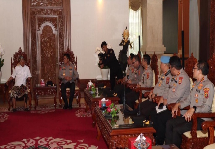 Kapolda Bali berkunjung ke Gedung Jayasabha dalam rangka silahturahmi pertama dengan Gubernur Bali didampingi Wakapolda Bali Brigjen Pol. I Gusti Kade Budhi Harryarsana, S.I.K., S.H., M.Hum dan Pejabat Utama Polda Bali