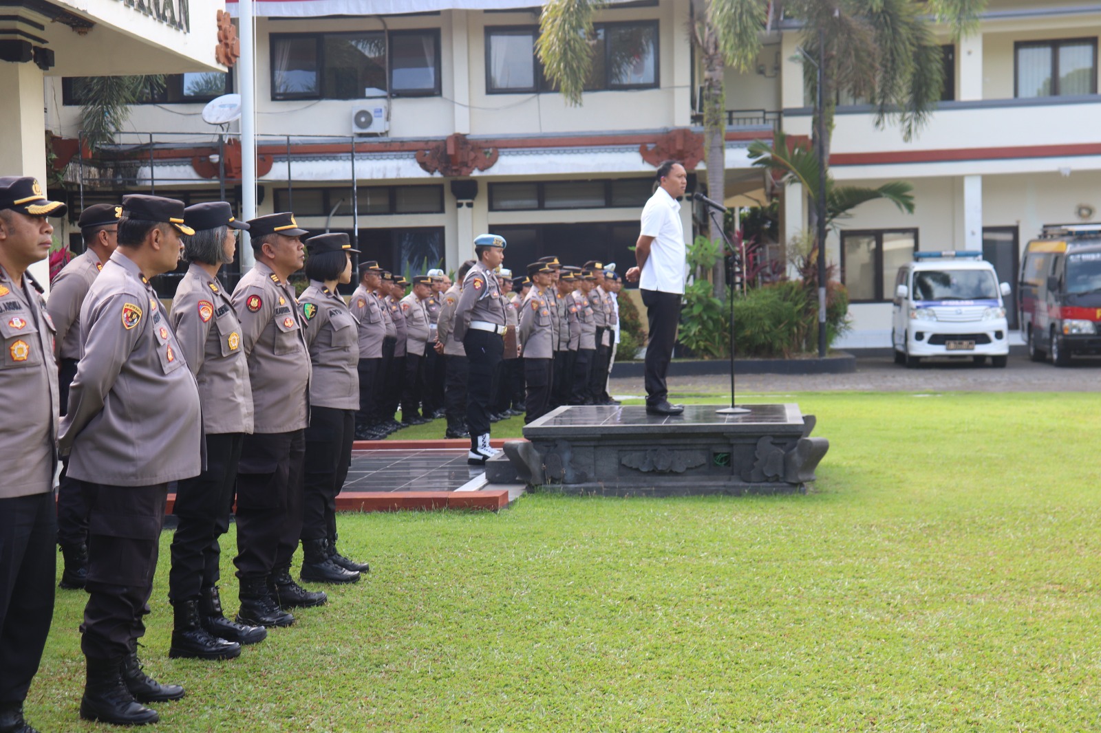 Apel pagi dihadiri Pejabat Utama Polres Tabanan dan diikuti oleh Perwira, Brigadir dan PNS Polres Tabanan.