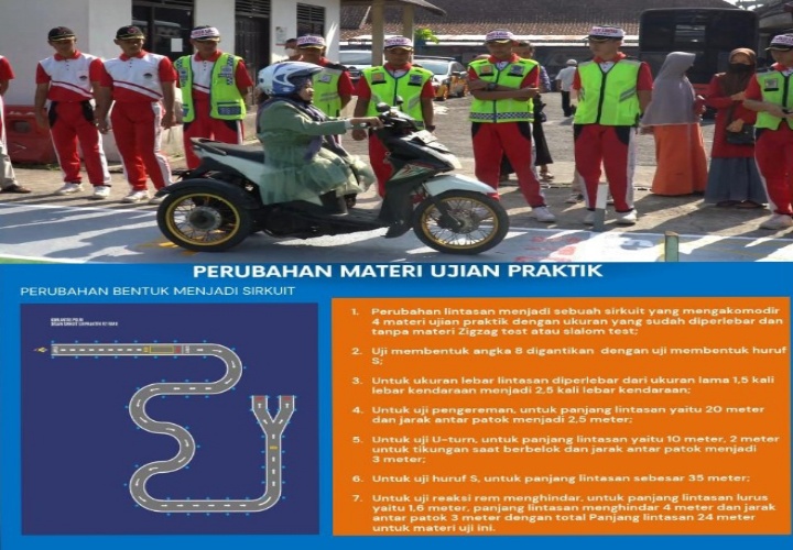 1. Perubahan lintasan menjadi sebuah sirkuit yang mengakomodir 4 materi ujian praktik dengan ukuran yang sudah diperlebar dan tanpa materi Zigzag test atau slalom test;