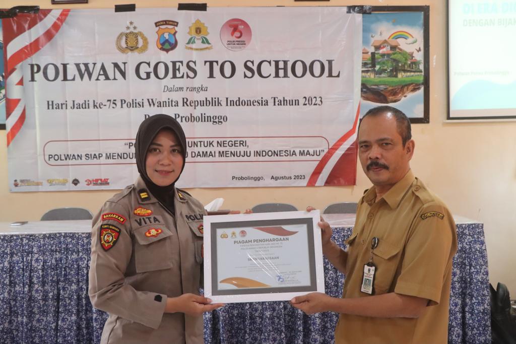 Kehadiran puluhan srikandi hebat Polres Probolinggo mendatangi sekolah menengah ini merupakan salah satu rangkaian kegiatan menyambut Hari Ulang Tahun (HUT) ke-75 Polisi Wanita (Polwan)