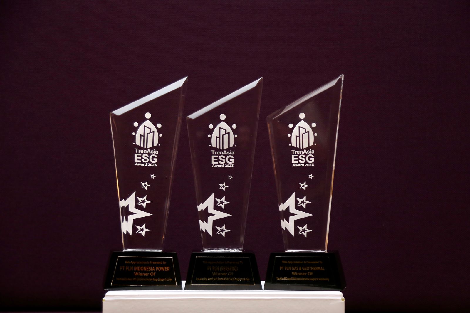 Sedangkan dalam ajang "TrenAsia ESG Award 2023", PLN Group memperoleh total 3 penghargaan penerapan prinsip _Environment, Social, and Governance_ (ESG) yang masing-masing dianugerahkan kepada PLN (Persero) untuk BUMN (SOE) _Category for Action_, PLN Gas & Geothermal untuk _Alternative Category for Sustainability_ dan PLN Indonesia Power untuk _Intrastucture Energy Category for Action_.