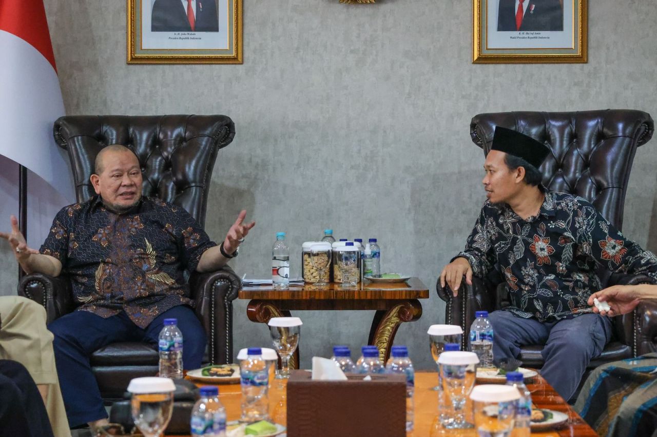 JAKARTA, IPERS - Sejumlah aktivis dari kalangan umat Islam melakukan audiensi dengan Ketua DPD RI, AA LaNyalla Mahmud Mattalitti di kediamannya, kawasan Kuningan, Jakarta, Kamis (9/11/2023). Mereka menolak rencana konser grup musik asal Inggris, Coldplay yang akan digelar 15 November 2023 di GBK Senayan.